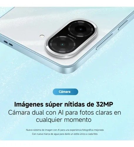 El Xiaomi Redmi A5, cuenta con las especificaciones de 4GB de RAM y 128GB de ROM. La cámara principal de este modelo es de 32 MP, y el término "DUAL" se refiere a la configuración de cámara trasera doble.